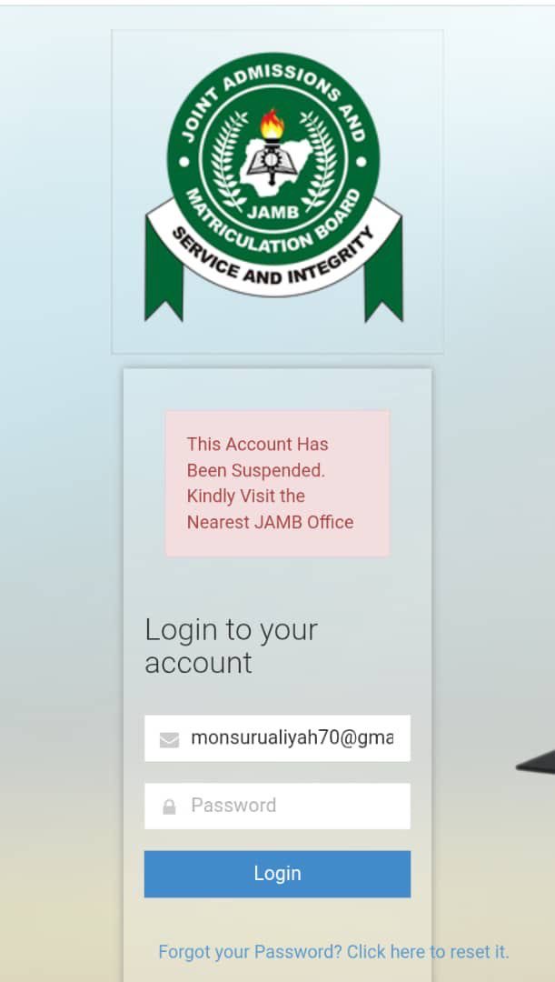 Attached with a screenshot of the suspended account of one of the affected students, Monsura Aliat Aduragbemi, Onyia wrote, “I’m sad! JAMB has suspended the accounts of the students that we raised a petition with against UNILAG and OAU.