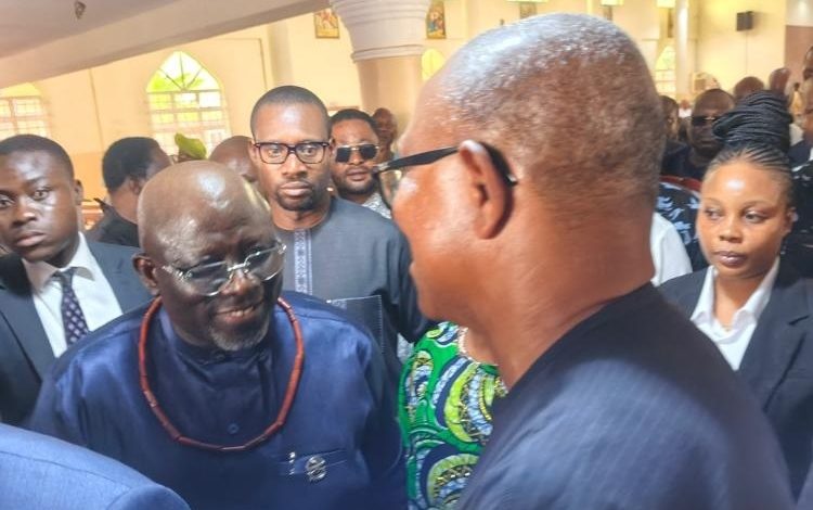 Former Governor of Anambra State and presidential aspirant, Peter Obi, joined notable Nigerians on Friday, to pay tribute to the late Senator Peter Nwaoboshi at his funeral Mass held at St. Augustine Catholic Church, Ibusa, Delta State.